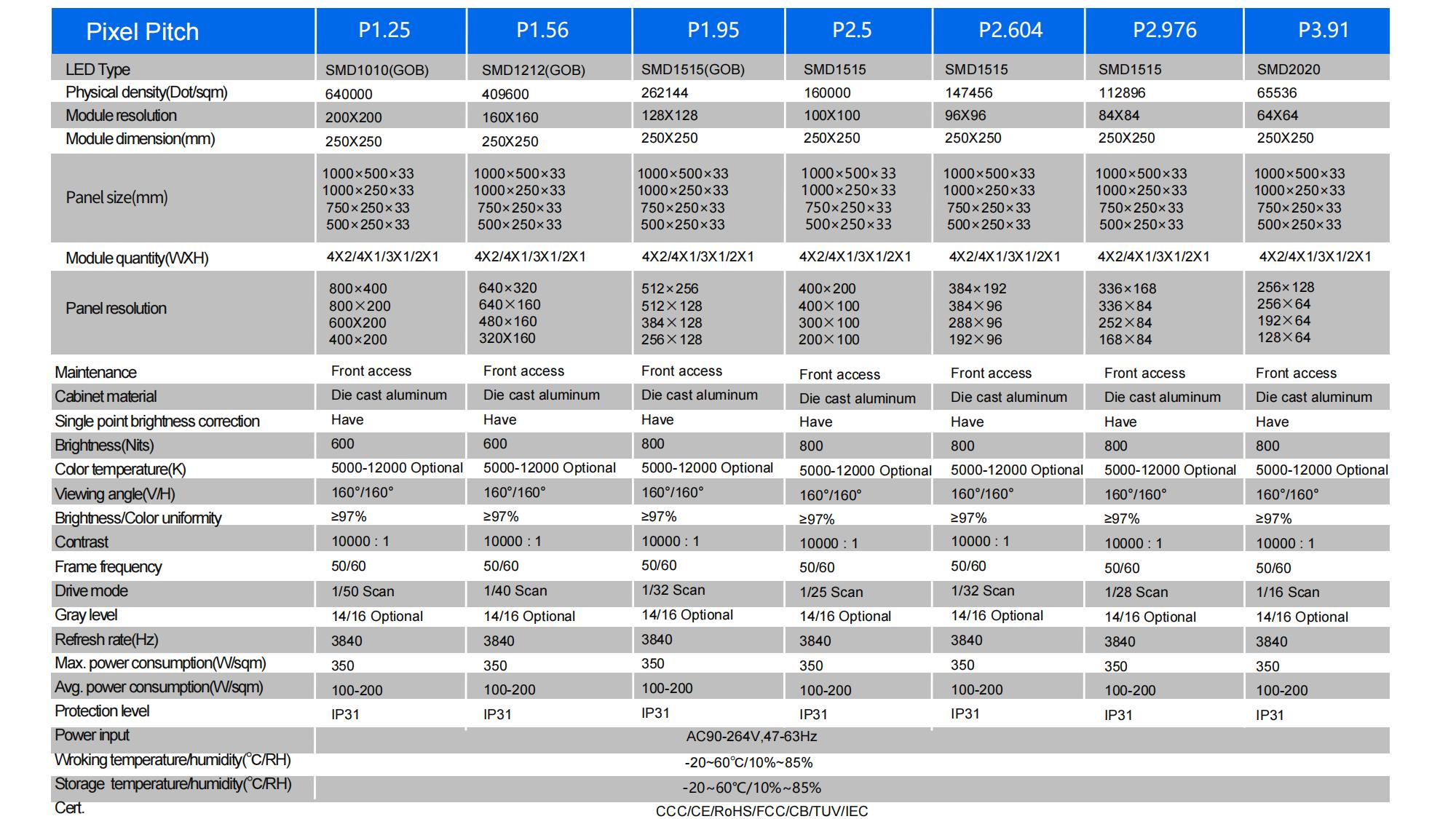 P1.25/P1.5625/P1.95/P2.5/P2.604/P2.976/P3.91